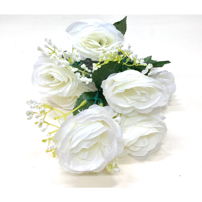 Bunga Rose mekar 10 kuncum - putih / bunga plastik / daun plastik | Shopee Indonesia