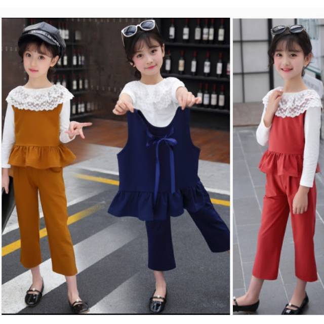 Setelan Baju Celana Kulot Jeans Anak Perempuan / Set Baju Jeans Anak Import | Shopee Indonesia
