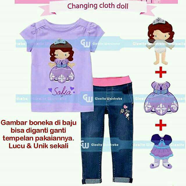 Setelan jeans panjang dan kaos anak perempuan/baju import anak/setelan jeans anak cewe/setelan sofia | Shopee Indonesia