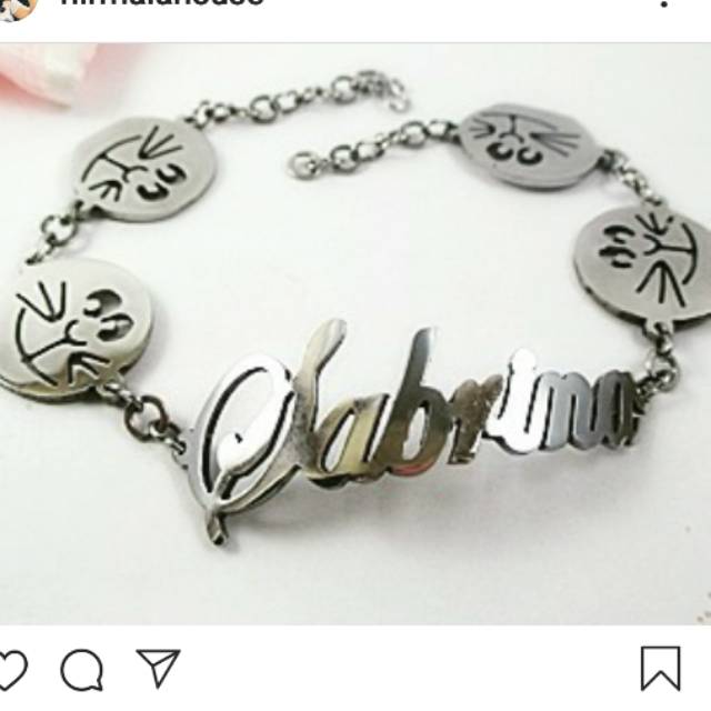 perhiasannama5758 Instagram post (photo) Kalung + Gelang Nama Doraemon. Anti Karat, Anti Luntur dan Anti Iritasi Kulit. Info harga dan pemesanan, silakan langsung chat WA kami : 085713225758 #kalung #gelang #kalungnama #gelangnama #