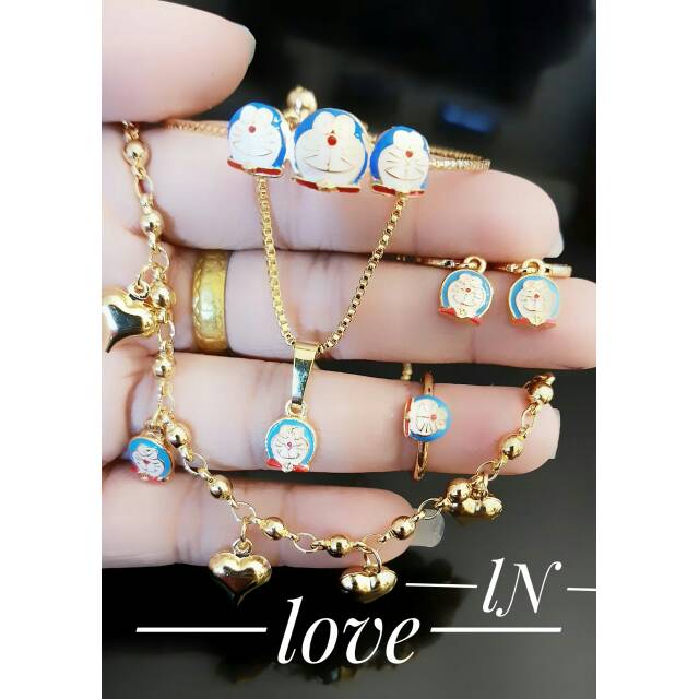 Set anak doraemon ( cincin anting cincin gelang kaki , gelang tangan dan kalung ) | Shopee Indonesia