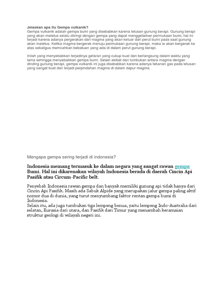 gempa bumi vulkanik adalah jenis gempa bumi yabg di sebabkan oleh… A. pergeseran antar lempeng - Brainly.co.id