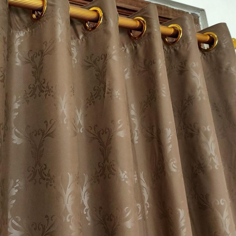 QY_47 Gorden Polos Pintu Jendela Murah Model Smokering 12 Ring Warna Coklat Emboss Mewah Elegan [76] | Shopee Indonesia