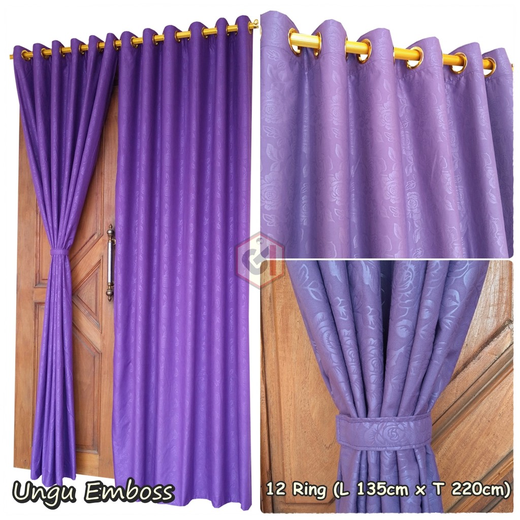 Gorden Pintu Polos Murah-Gordyn Pintu Rumah Warna Ungu Motif Emboss Model Smokering 12 Ring | Shopee Indonesia