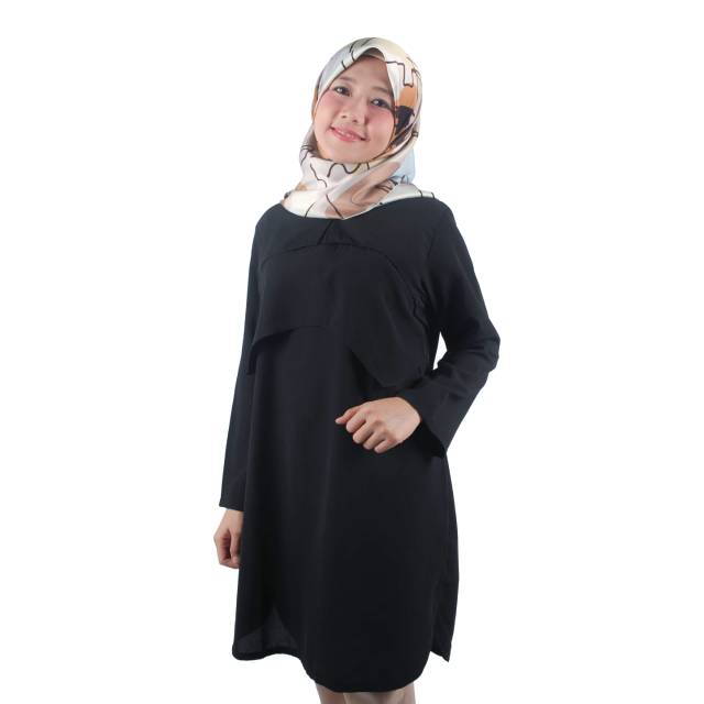 BLACK TUNIC - BAJU HITAM POLOS - TUNIK HITAM PANJANG - BLIUSE HITAM WANITA | Shopee Indonesia