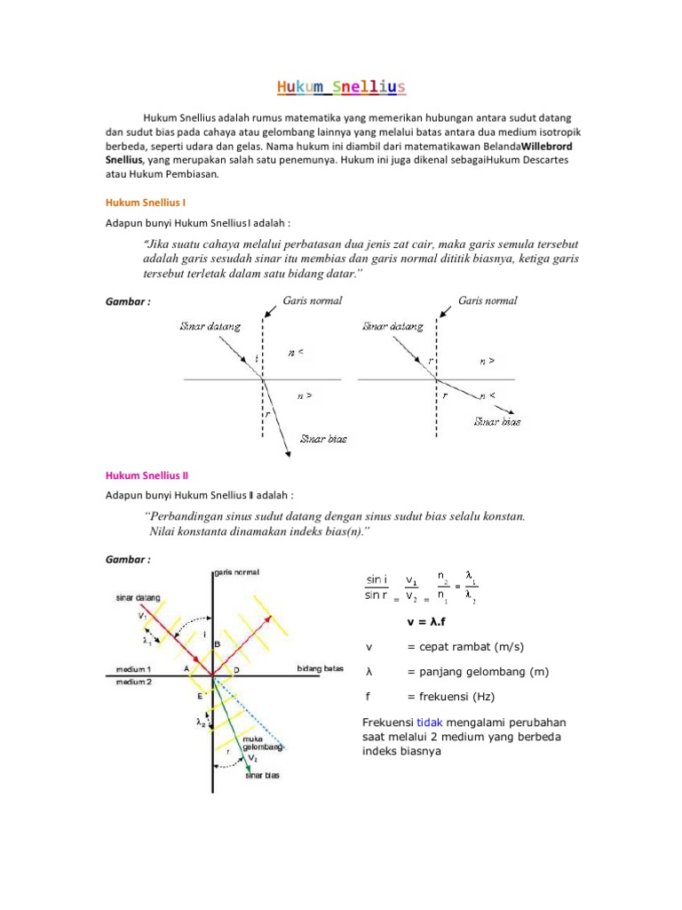 Bunyi Hukum Snellius