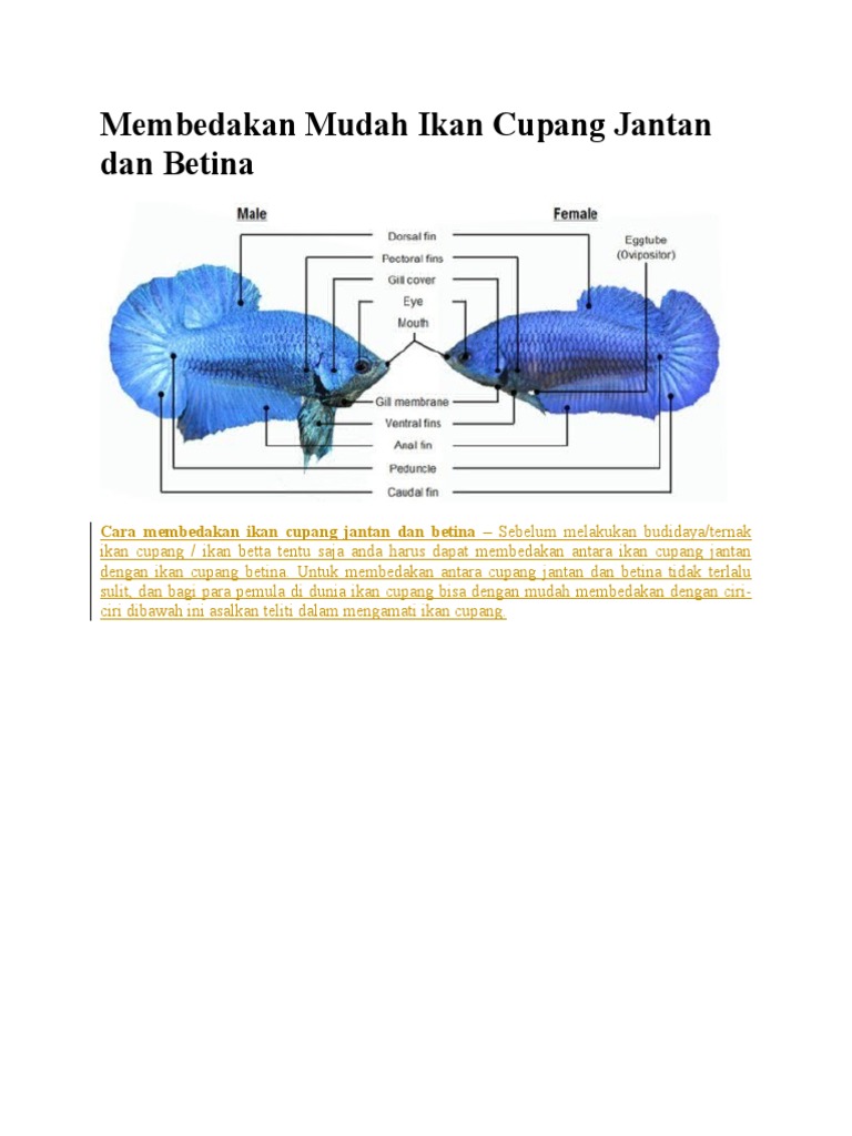 Membedakan Mudah Ikan Cupang Jantan Dan Betina - [DOC Document]