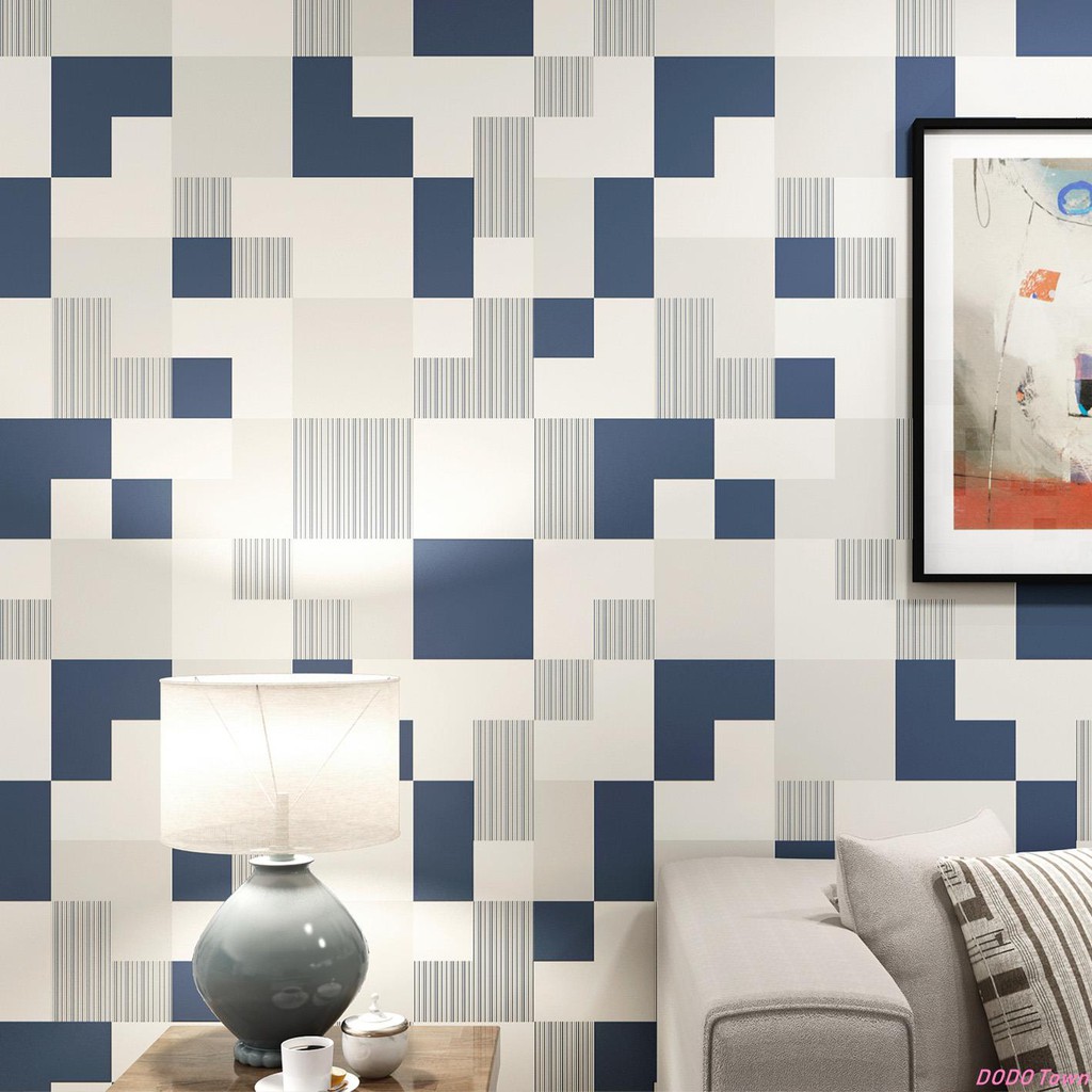 DT] Hijau kecil segar dan sederhana modern mosaik kisi non-woven wallpaper kamar tidur ruang TV lat | Shopee Indonesia