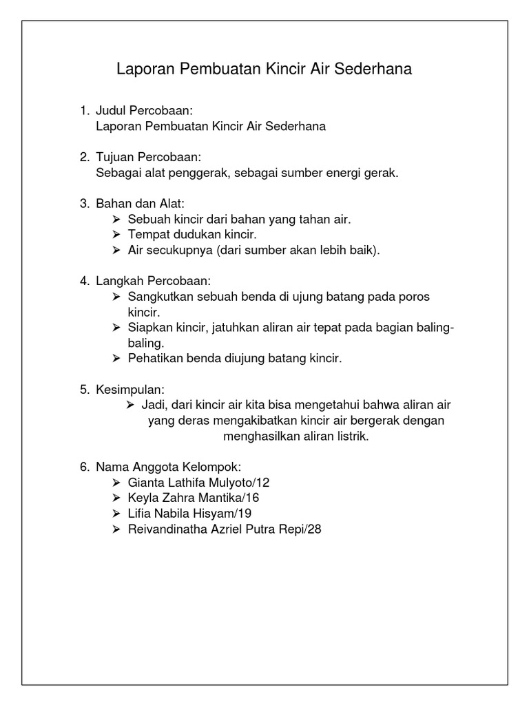 Cara Mmebuat Kincir Air Sederhana - [DOCX Document]
