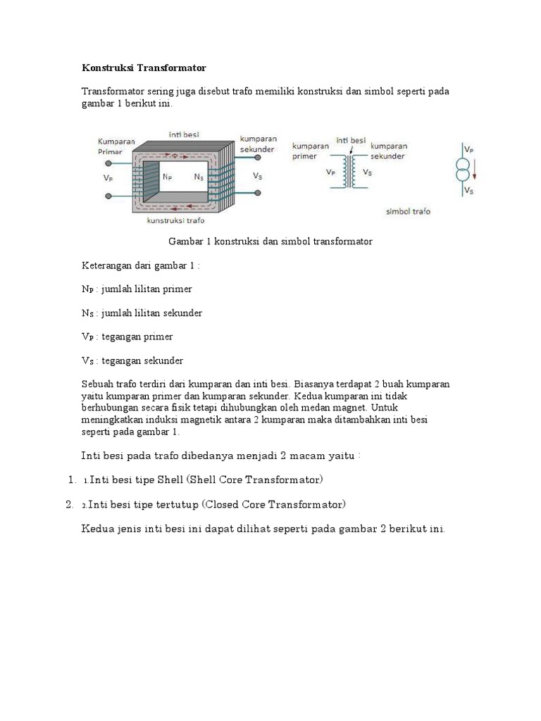 Konstruksi Transformator 2.docx - Konstruksi Transformator Transformator sering juga disebut trafo memiliki konstruksi dan simbol seperti pada gambar | Course Hero