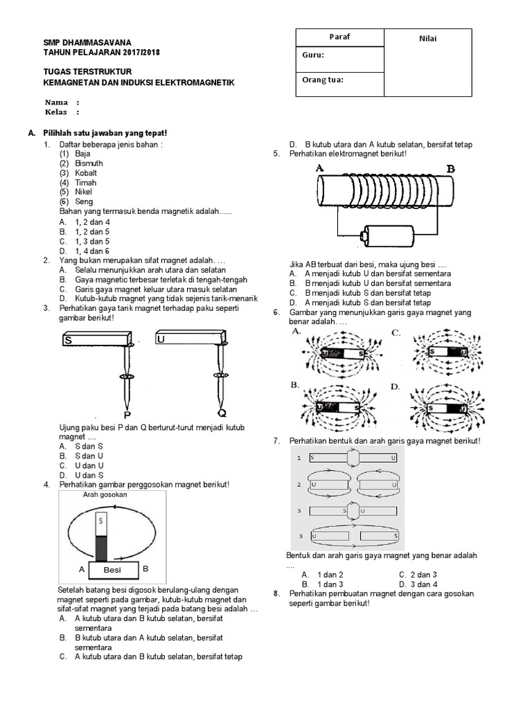 SOAL-SOAL : KEMAGNETAN A. Pilihan Ganda