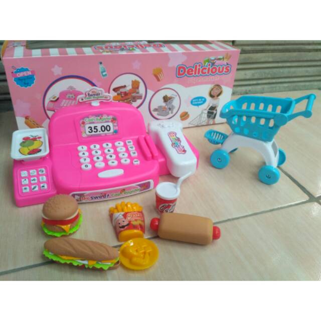 Mainan Cash Register Supermarket Delicious / Mainan Kasir kasiran Set Troli Supermarket Murah | Shopee Indonesia