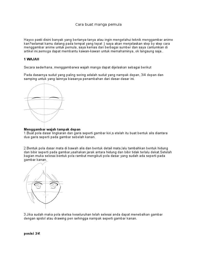 Dunia Menggambar: Teknik menggambar manga mudah dan sederhana (Tampak Depan)