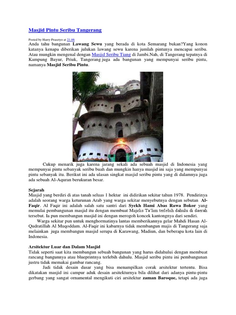 Masjid Pintu Seribu Wisata Bersejarah Kota Tangerang - kompasiana.com