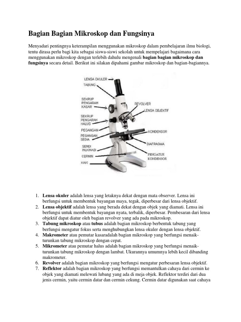 DOC) Bagian Bagian Mikroskop dan Fungsinya | Desi Ratna Ayu Ramdani - Academia.edu