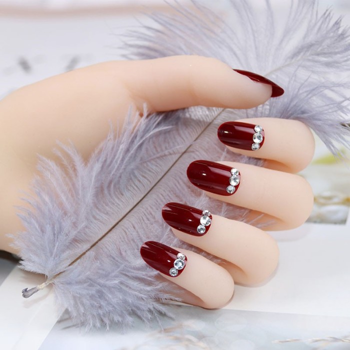 Jual 24Pcs / Set Kuku Palsu Model Berlian Imitasi Warna Merah Wine dengan - Jakarta Pusat - xing shop 1 | Tokopedia