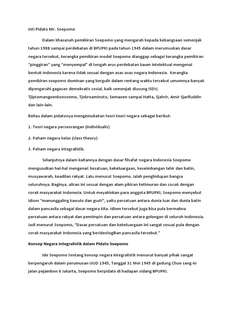 Dr. Soepomo menyampaikan usulan dasar negara indonesia. Salah satu isi usulan Dr. Soepomo ialah - Brainly.co.id