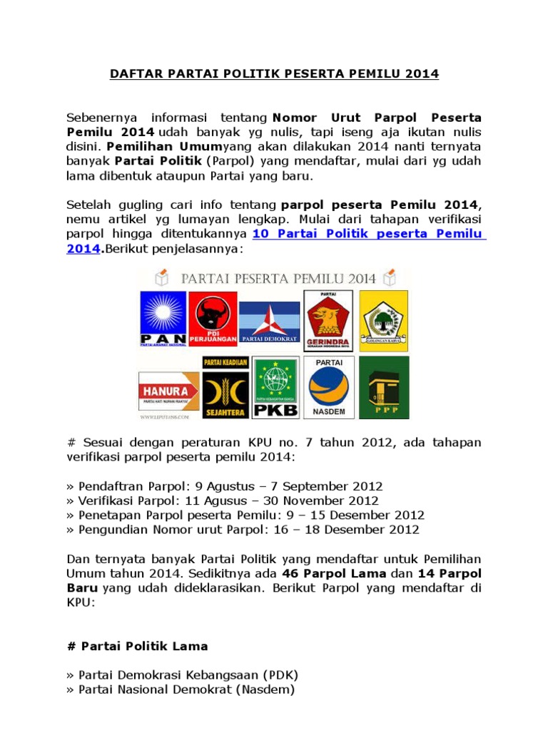 Daftar Partai Politik Peserta Pemilu 2014 - Layanan-Guru