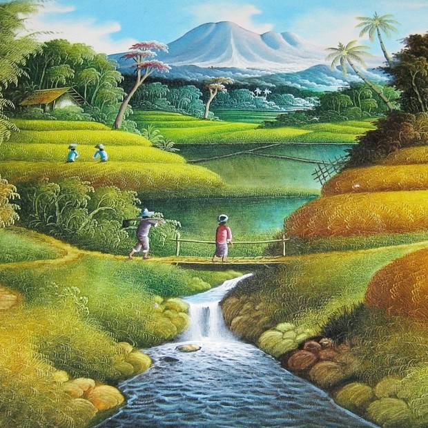 Lukisan Panen Padi dan Pemandangan yang sangat Indah dan Exclusive | Shopee Indonesia