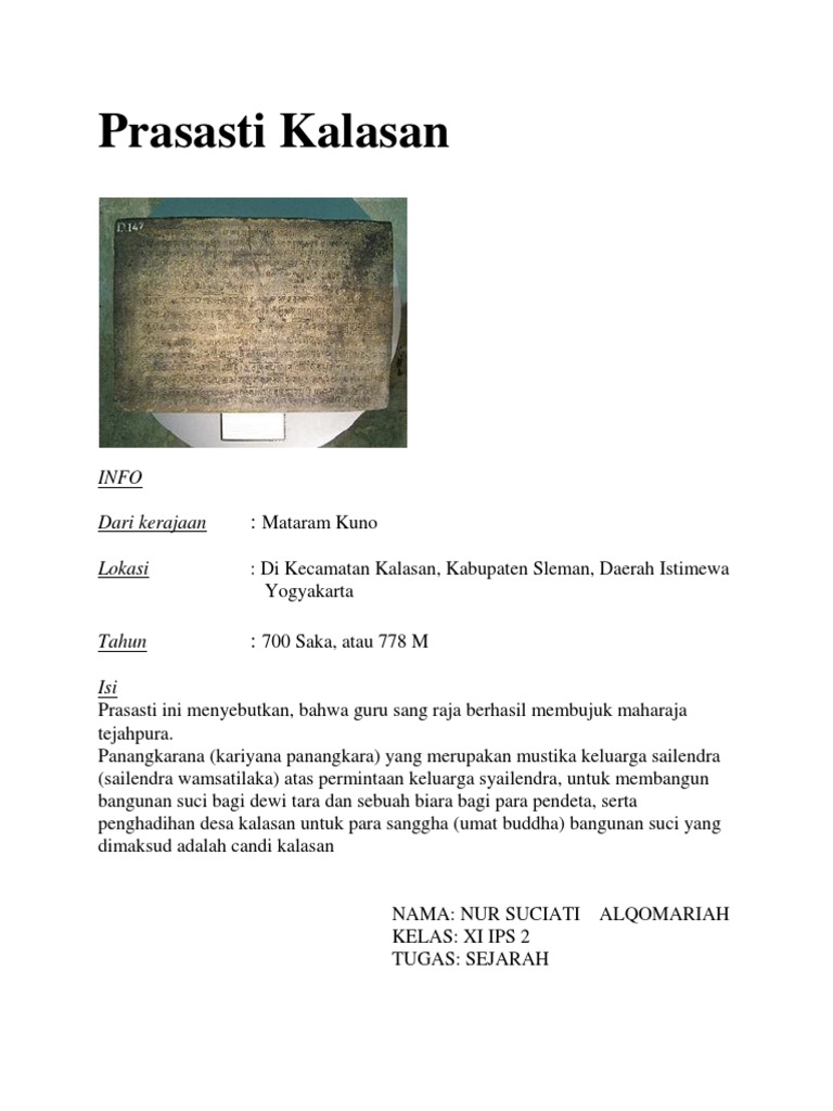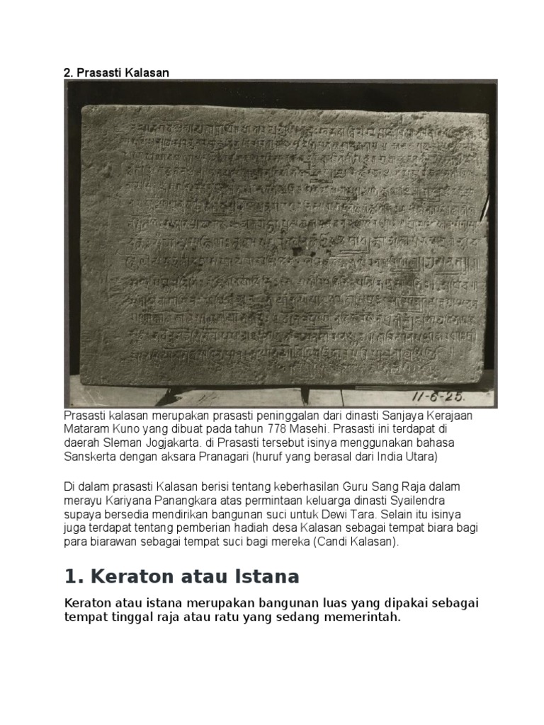 Apa yang anda ketahui tentang Prasasti Kalasan ? - Arkeologi - Dictio Community