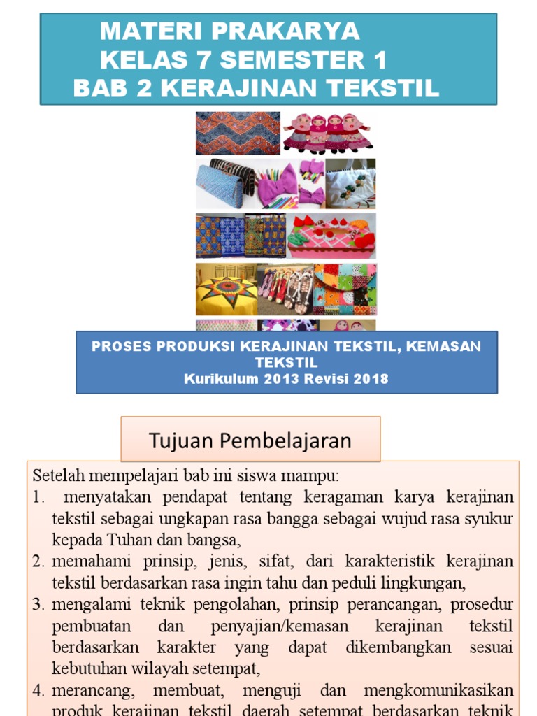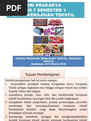 Peta Materi KERAJINAN TEKSTIL. Jenis dan Karakteristik. Kerajinan Tekstil. 1. Tapestri 2. Batik 3. Sulam 4. Jahit Aplikas - PDF Free Download