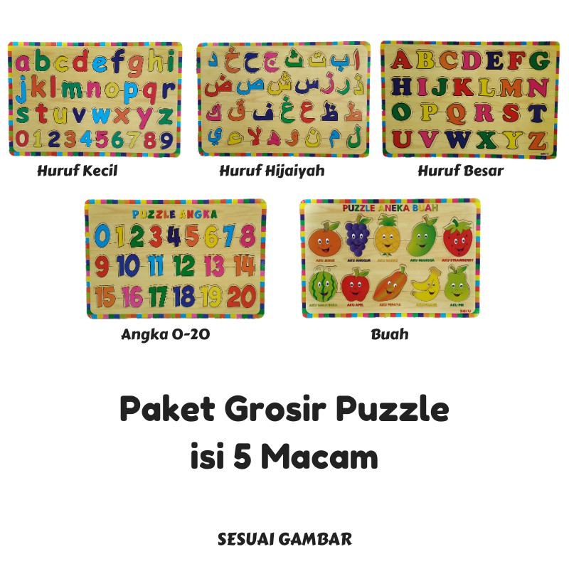 Rapid Toys Isi 5 / Paket Puzzle Kayu Edukasi Edisi Baru / Huruf Hijaiyah Besar Kecil Angka Dan Buah | Shopee Indonesia