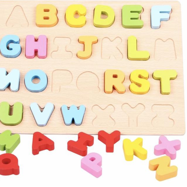 Puzzle mainan kayu angka da huruf alphabet, Bayi & Anak, Mainan & Baby Walker di Carousell