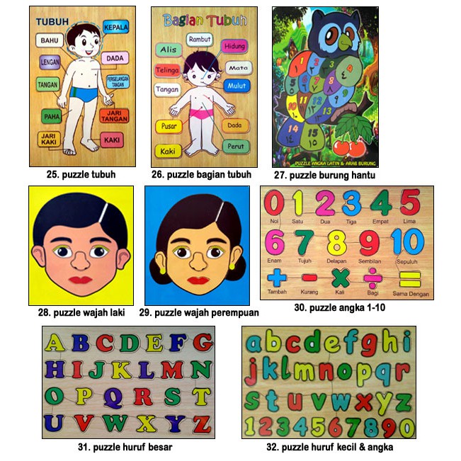 Informasi terbaru kunjungi situs web : namabarang gambar ukuran(cm) bahan harga 1 puzzle angka 1 - 20 30 x 20 x 0,6 mdf, art paper dilaminasi rp 35,000 2 puzzle angka dan berhitung