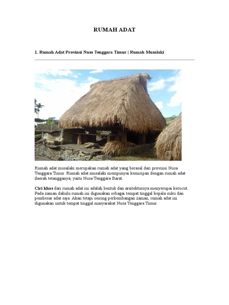 Rumah Adat Provinsi Nusa Tenggara Timur | Rumah Musalaki – faizalefendi