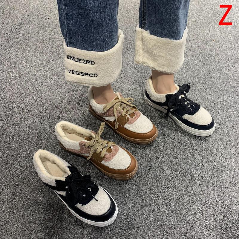 tar bawah renda-up pencocokan warna ditambah sepatu beludru sepatu kasual wanita | Shopee Indonesia