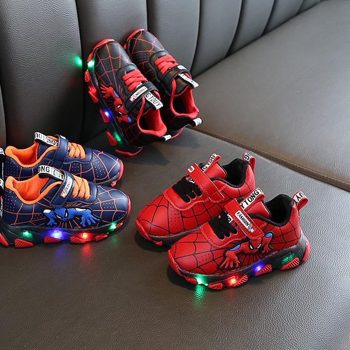 D~I~S~K~O~N hb SPIDERMANCLIMB Sepatu Sneakers Anak Velcro Gambar Spiderman Dengan Lampu LED | Shopee Indonesia