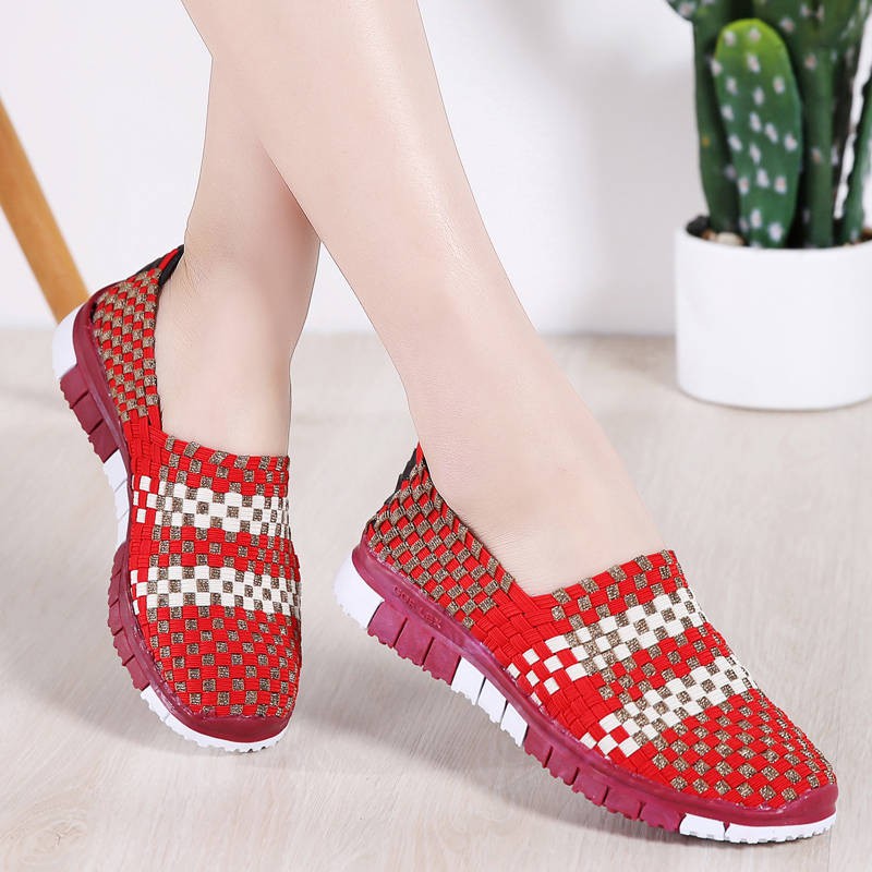 Buatan tangan murni sepatu rajut, Wanita 2020 sepatu flat kasual, Non - Slip bawah lembut sepatu Bei | Shopee Indonesia
