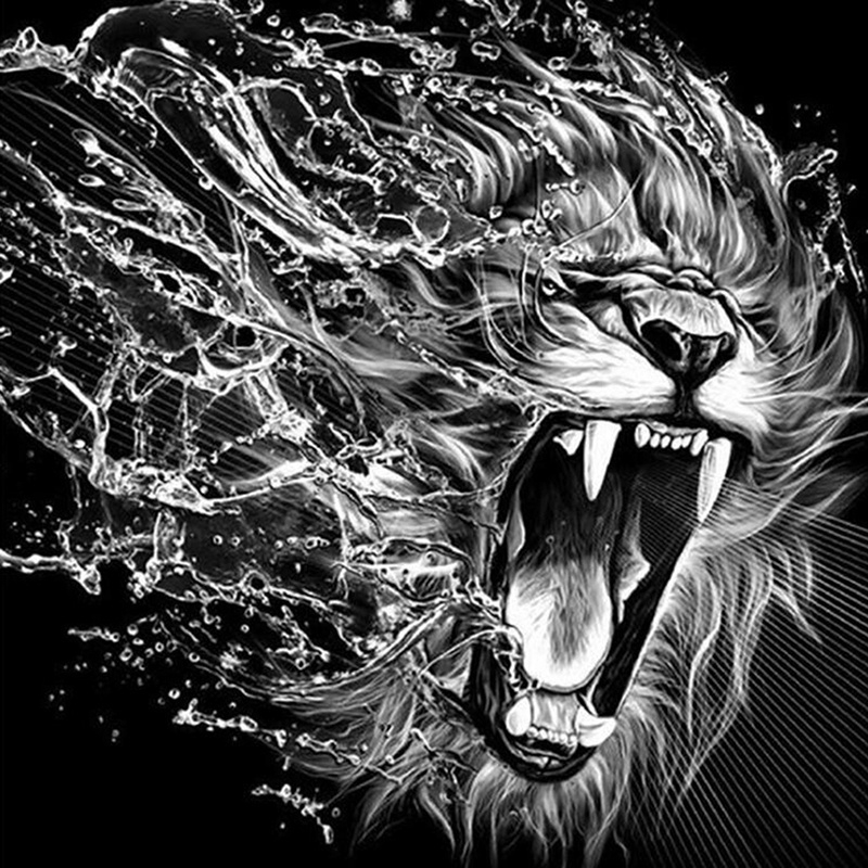 Lukisan Diamond Diy Gambar Singa Warna Hitam Dan Putih Untuk Dekorasi Rumah | Shopee Indonesia