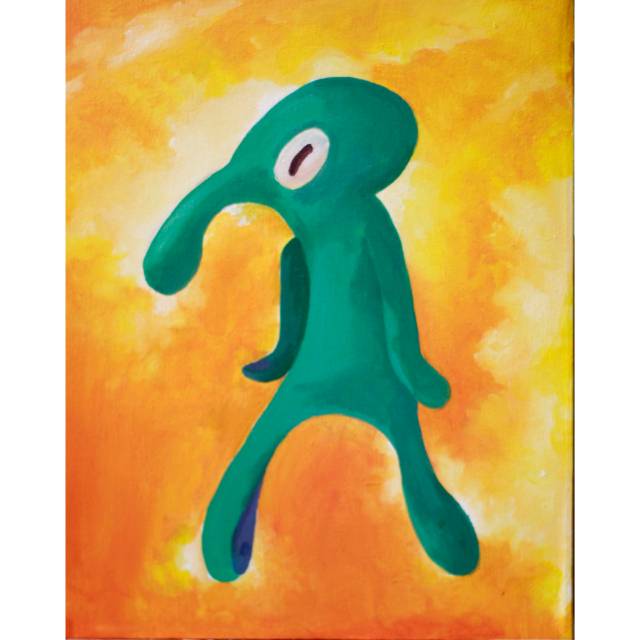 Lukisan squidward acrylic on canvas with jam | Shopee Indonesia