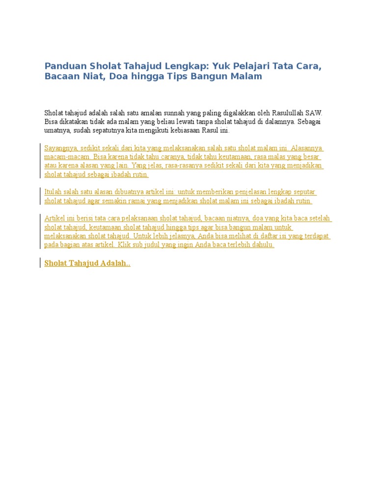 Cara Mengerjakan Sholat Tahajud Malam Secara Lengkap - Guru Ilmu Sosial