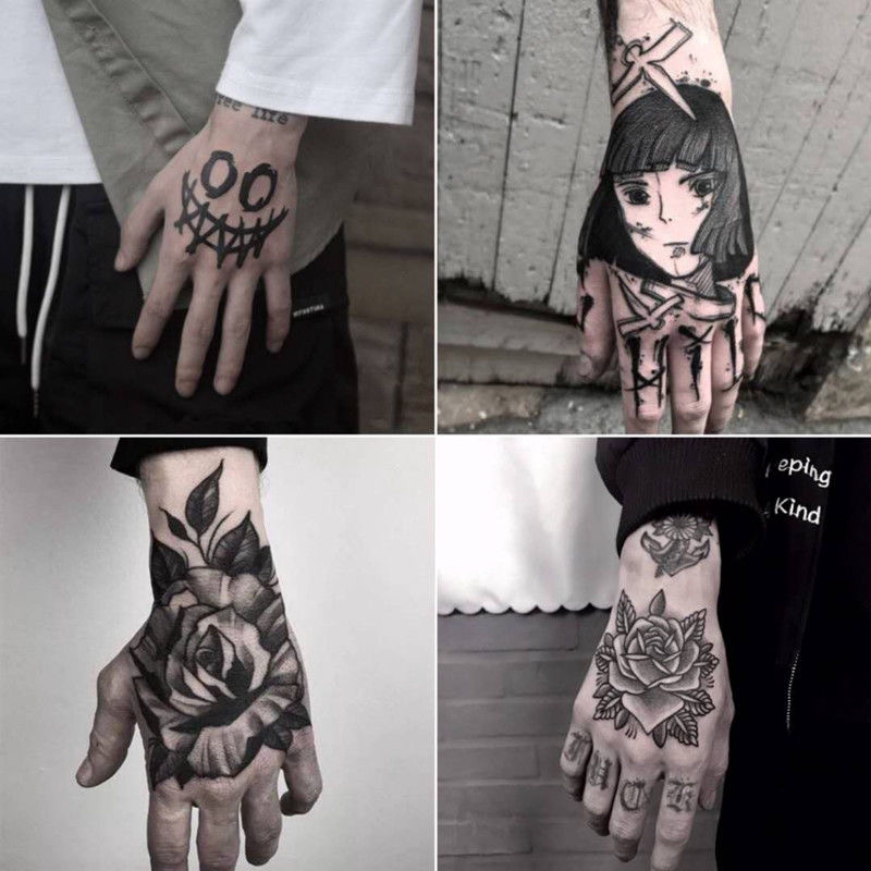 10 buah/pack sementara tato stiker set tangan tato mawar hitam bunga mehndi stiker untuk tangan zombie tato untuk pria grosir| | - AliExpress