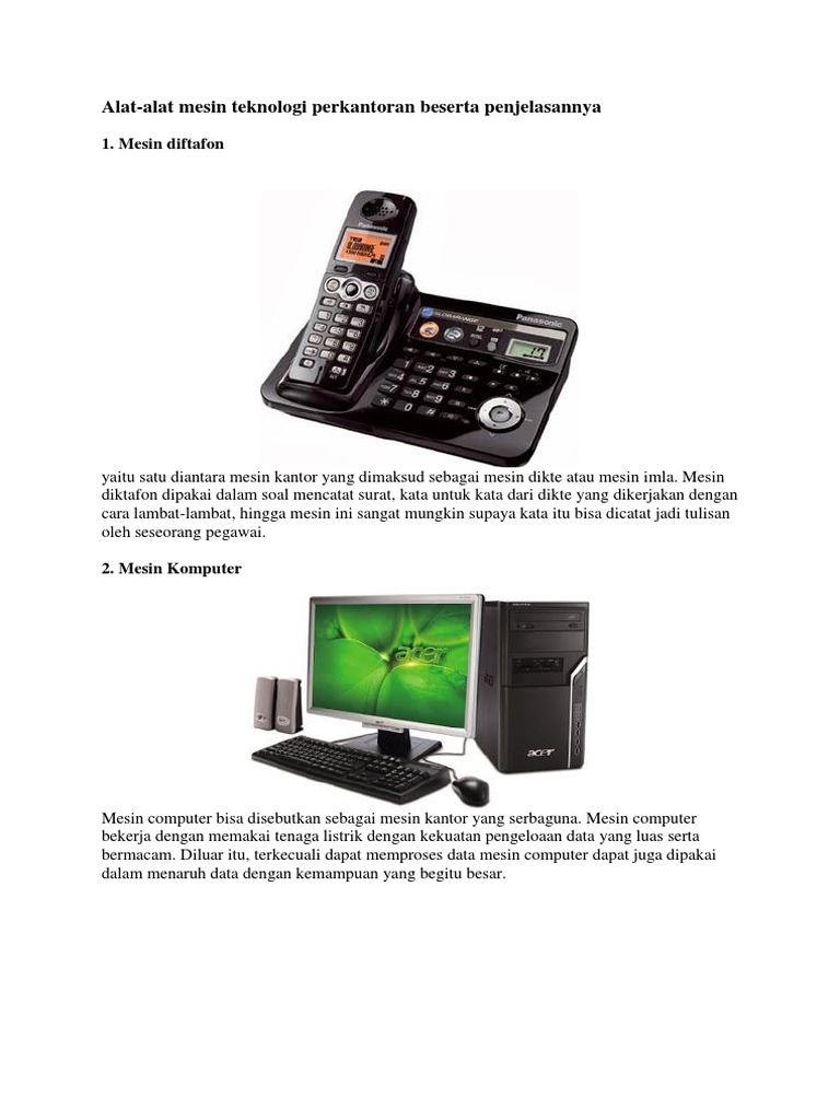 Alat-alat mesin teknologi perkantoran beserta penjelasannya