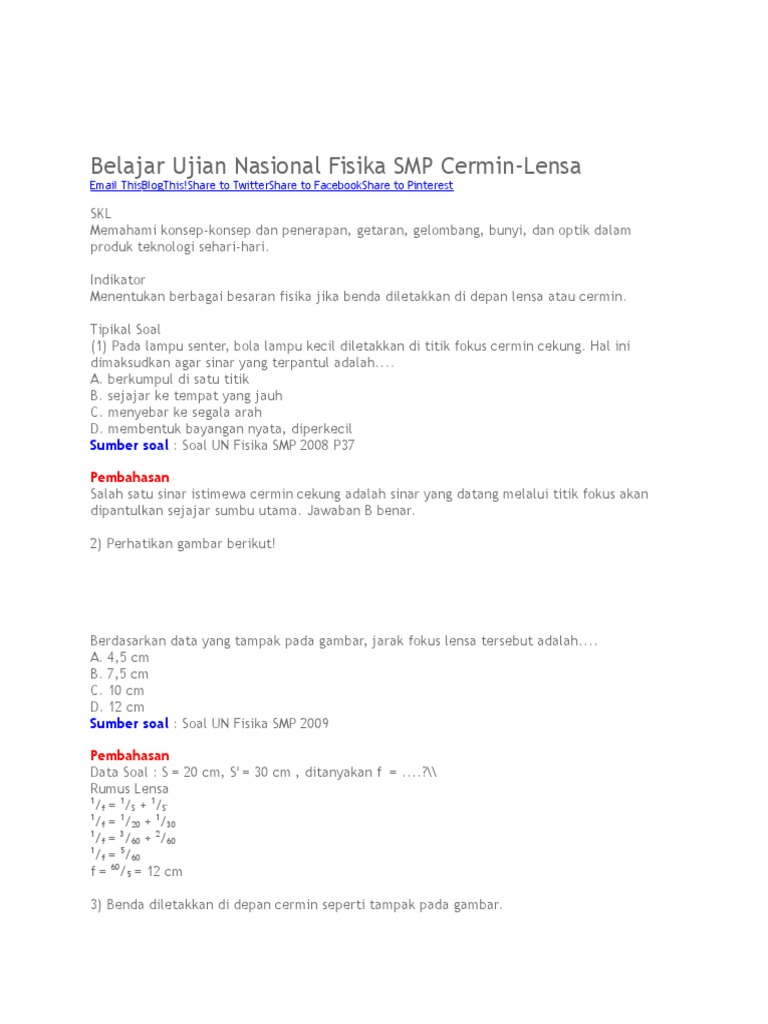 Cermin Cembung/Cekung, Lensa Cembung/Cekung: Sifat Bayangan, …
