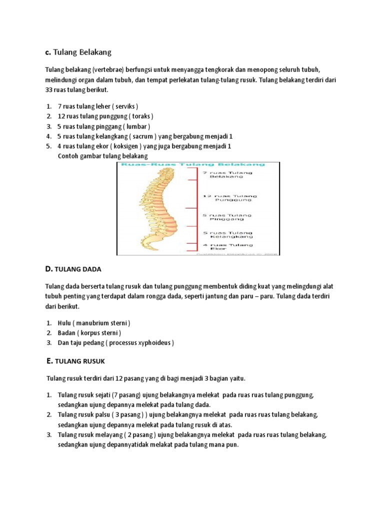 perhatikan beberapa tulang dalam tubuh berikut a tulang dada b tulang rusuk c tulang belikat - Brainly.co.id