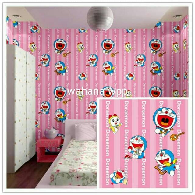 Wallpaper dinding Doraemon Garis Pink Baru | Shopee Indonesia