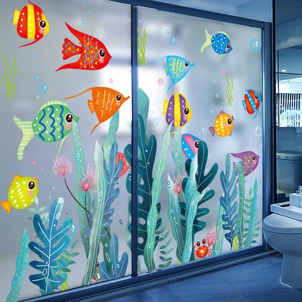 Pintu kaca stiker, Tahan air kamar mandi dekorasi ikan kecil, Self adhesive wallpaper, Kamar mandi t | Shopee Indonesia