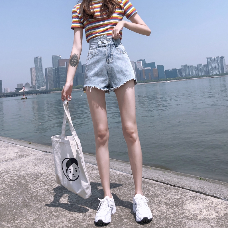 pinggang ultra-tinggi celana pendek denim wanita kurus 2020 musim panas baru tipis bagian pakai long | Shopee Indonesia