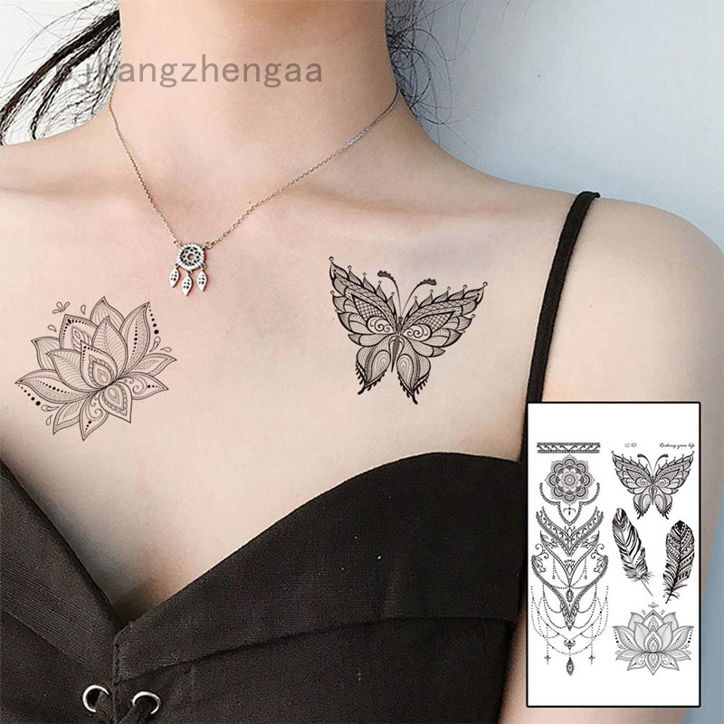 Stiker Tato Henna Temporary Desain Renda Bunga Mandala Kupu-Kupu Warna Hitam Untuk Wanita | Shopee Indonesia