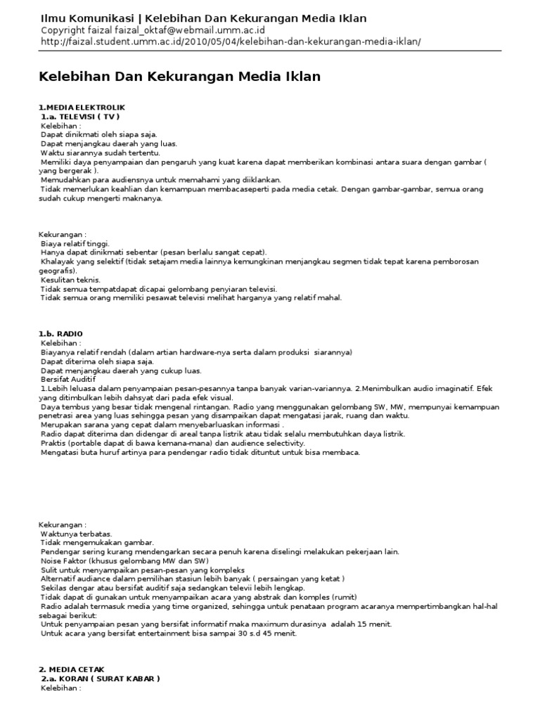 Ilmu Komunikasi-Kelebihan Dan Kekurangan Media Iklan