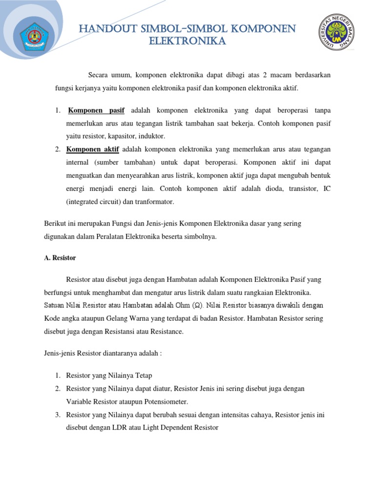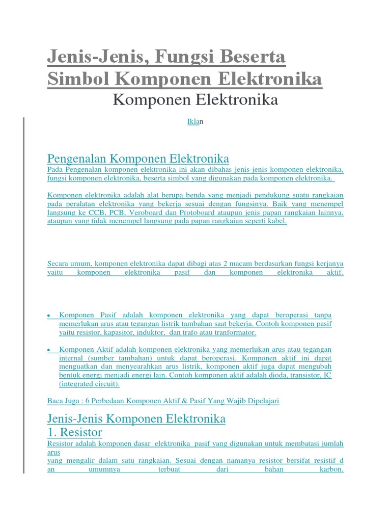 DOC) Jenis-jenis Komponen Elektronika | Bintang Raja Pasha - Academia.edu
