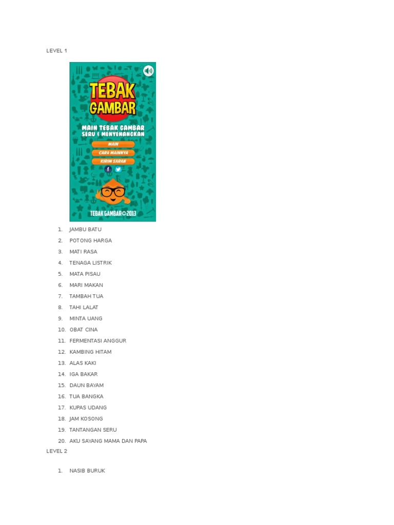 Kunci Jawaban Tebak Gambar Level 2 Terbaru 2016 - Ngetik