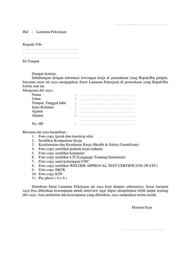 DOC ) Download Contoh Surat Lamaran Pekerjaan Terbaru - Nekopencil