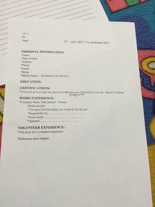 37-1 CV Year: 2023 You Graduated 2019 PERSONAL INF… | Chegg.com