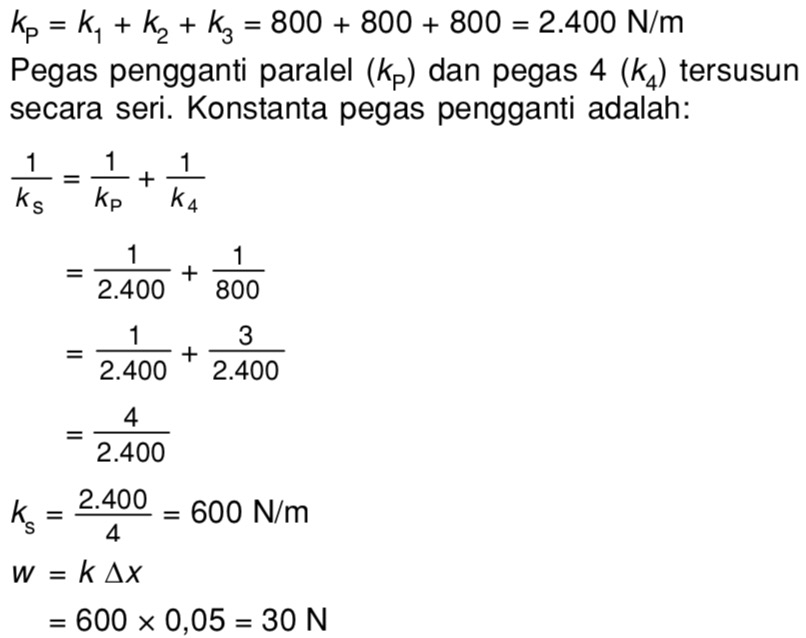 Perhatikan gambar rangkaian pegas disamping! Jika k1 = k2 = k3 = k4 = 800 N/ m digantung - Mas Dayat