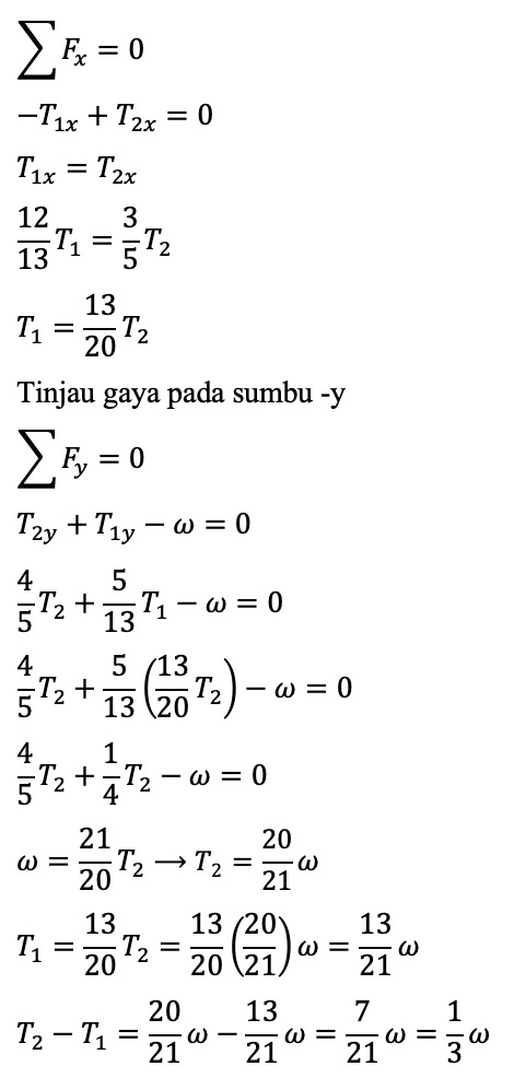 Perhatikan gambar di samping. Diketahui berat benda = w, g = 10 m/s2, sin a1 = 5/13 - Mas Dayat
